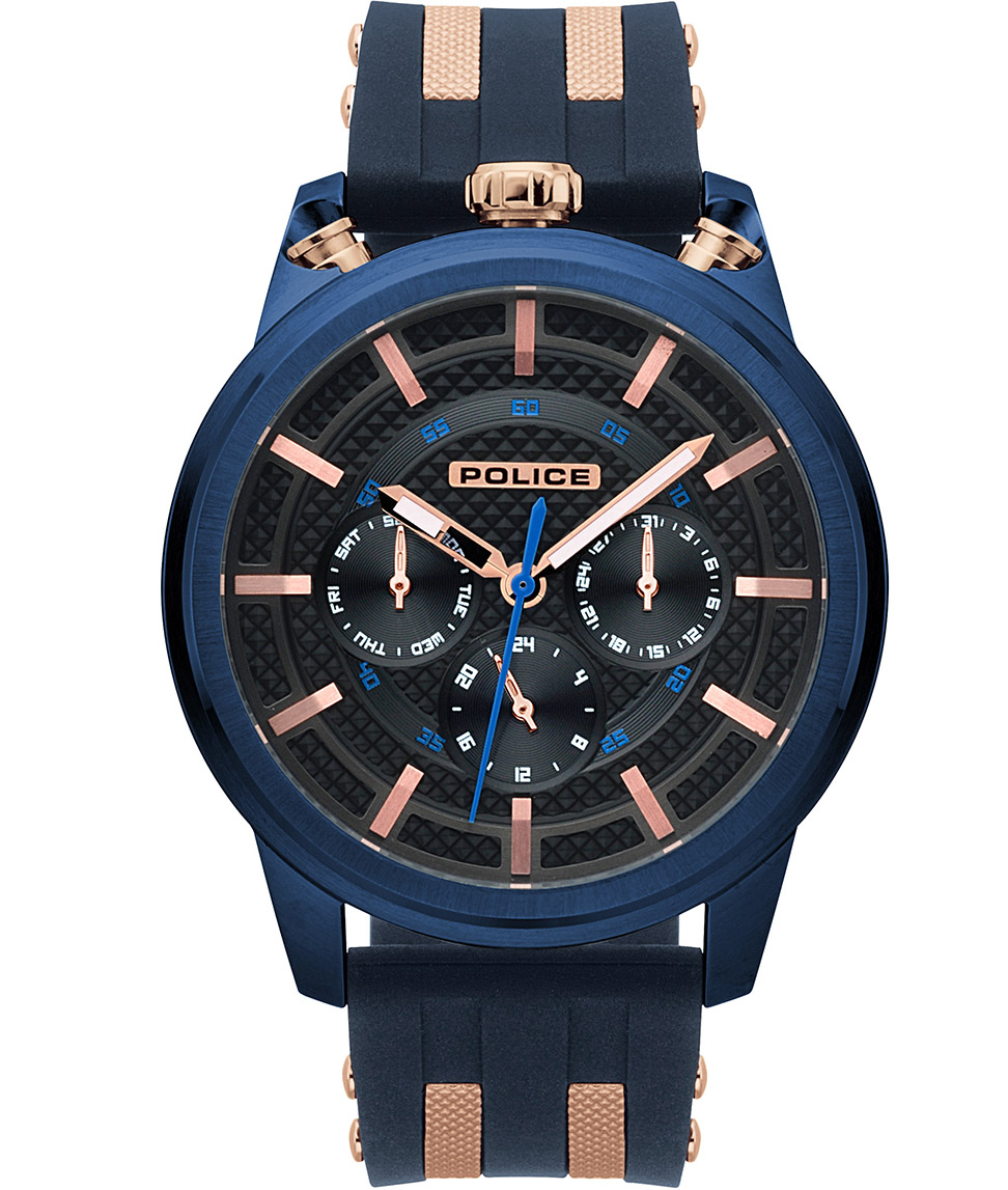 Upside PL15414JS02P is a model with a very stylish and sporty design. This men's watch has a silver stainless steel case of 48 mm diameter and a resistant black rubber strap. It has an epson quartz movement, displays the date and is water resistant up to 50 meters.
