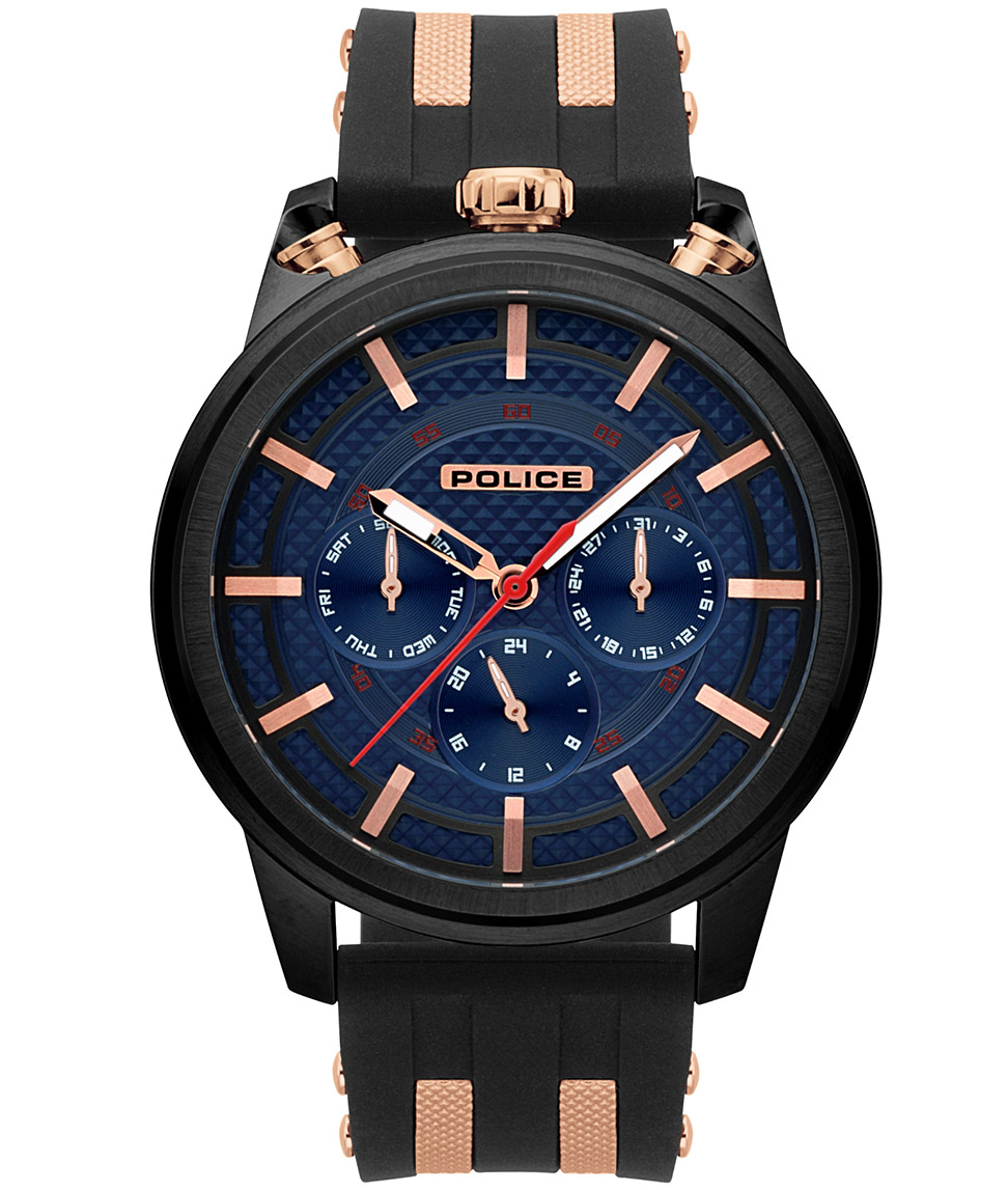 Upside PL15414JSBL61P is a model with a very stylish and sporty design. This men's watch has a blue and rose gold stainless steel case of 48 mm diameter and a resistant blue rubber strap. It has an epson quartz movement, displays the date and is water resistant up to 50 meters.
